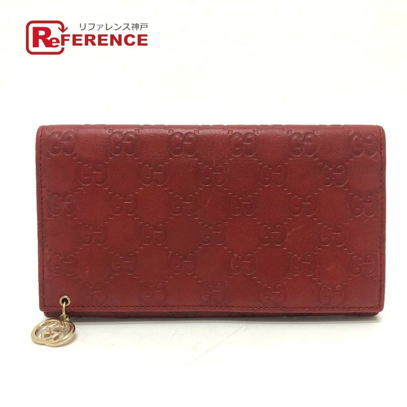 グッチ 赤色 GUCCI グッチ 212109 GG シマライン 財布 ウォレット フラップ 長財布 シマレザー レディース レッド 【中古】