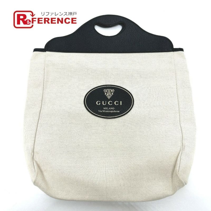 【中古良品】グッチ 黒色 GUCCI グッチ 284156 クレストロゴ カバン ハンドバッグ キャンバス/レザー レディース ベージュ×ブラック 【中古】