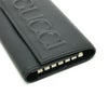 商品説明 上質なブラックレザーに、グッチの象徴であるロゴをエンボス(型押し)加工で施したデザイン。プリントや金具のロゴとは一味違う、凹凸が生み出す立体的な陰影が、控えめながらも確かな存在感を放ちます。
