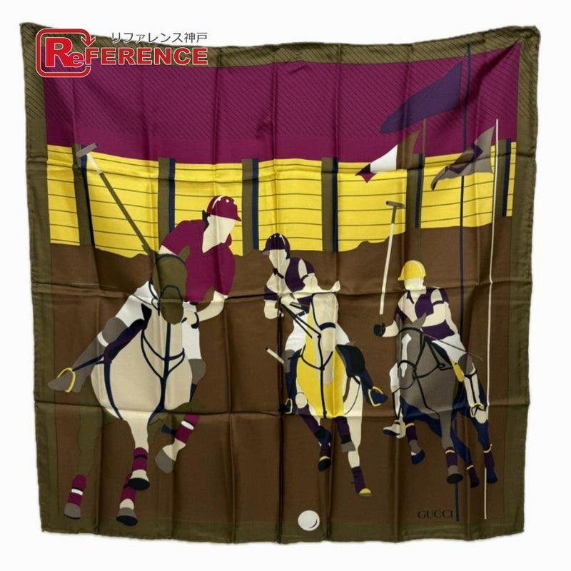 【未使用】グッチ 茶色 GUCCI グッチ オールドグッチ ジョッキーモチーフ ファッション小物 ヴィンテージ ポロ スカーフ シルク レディース ブラウン 未使用 【中古】