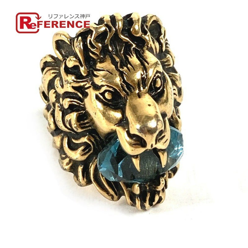グッチ 金色 GUCCI グッチ 402763 らいおん アニマル ライオン ストーン付き アクセサリー リング・指輪 メタル レディース ゴールド 16.5号 【中古】