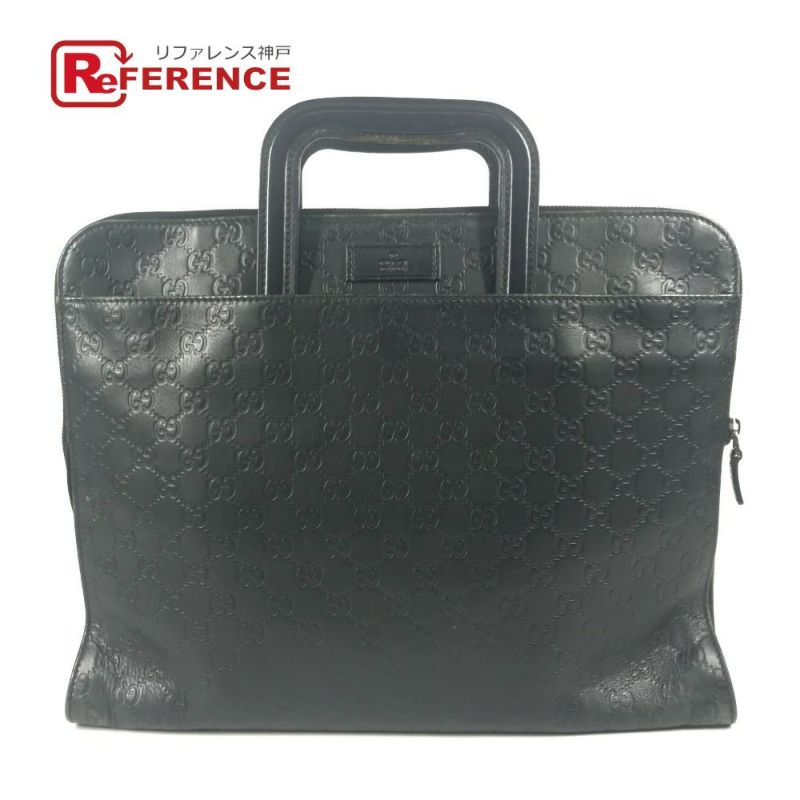 グッチ 黒色 GUCCI グッチ 152604 ハンドバッグ 書類バッグ グッチシマ GG ロゴ ビジネスバッグ カバン トートバッグ ブリーフケース シマレザー メンズ ブラック 【中古】