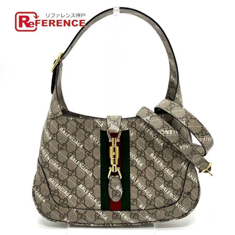 【新品同様】グッチ 薄茶色 GUCCI グッチ 636706 バレンシアガ BALENCIAGA コラボ ザ ハッカー プロジェクト カバン ジャッキー 1961 2WAY ハンドバッグ GGスプリームキャンバス レディース ベージュ 新品同様 【中古】