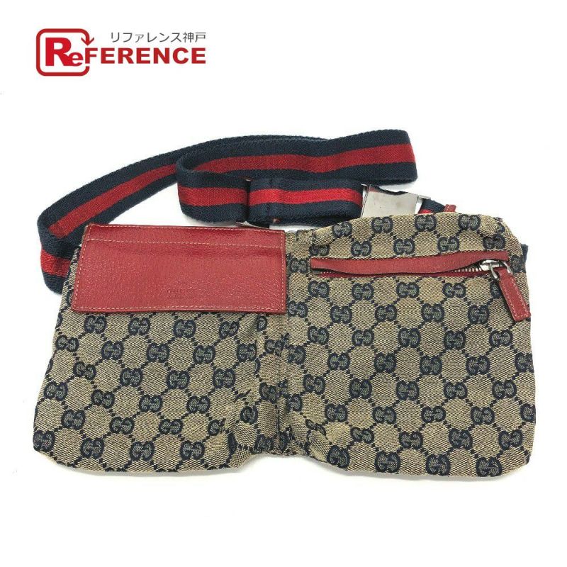 グッチ 赤色 GUCCI グッチ 28566 GG/ロゴ ボディバッグ カバン ウエストバッグ GGキャンバス/レザー メンズ レッド 【中古】