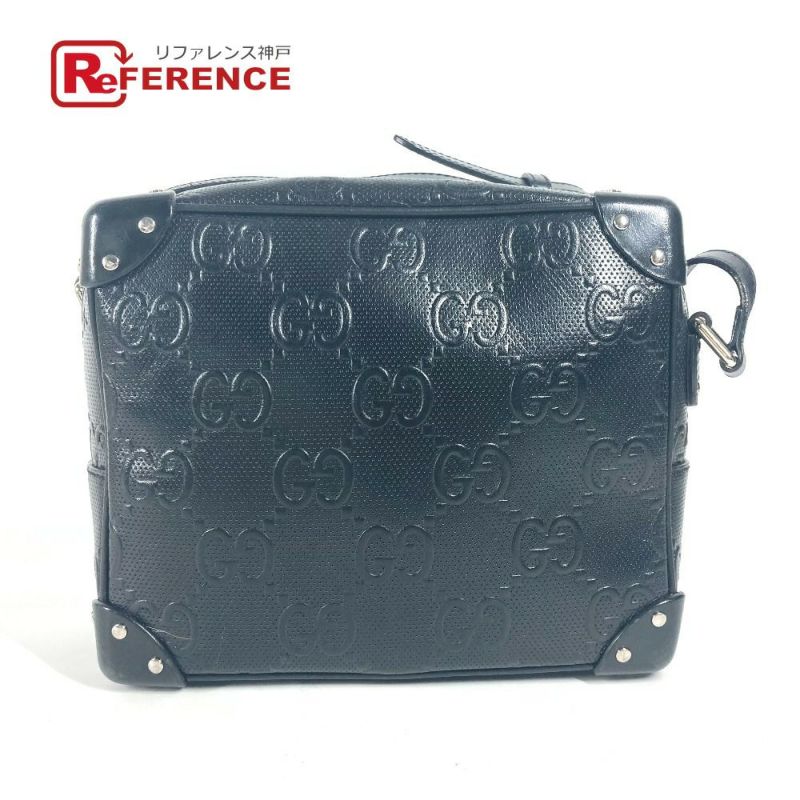 グッチ 黒色 GUCCI グッチ 626363 ポシェット GG エンボス ロゴ 斜め掛け カバン ショルダーバッグ レザー ユニセックス ブラック 【中古】