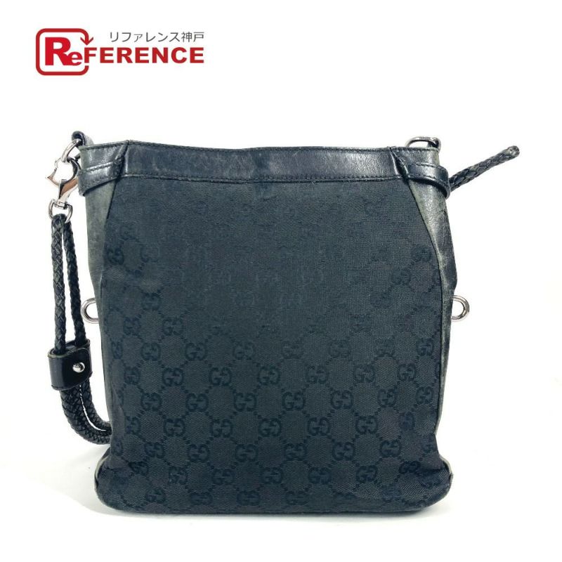 グッチ 黒色 GUCCI グッチ 109106 GG ロゴ カバン 斜め掛け ショルダーバッグ GGキャンバス/レザー ユニセックス ブラック 【中古】