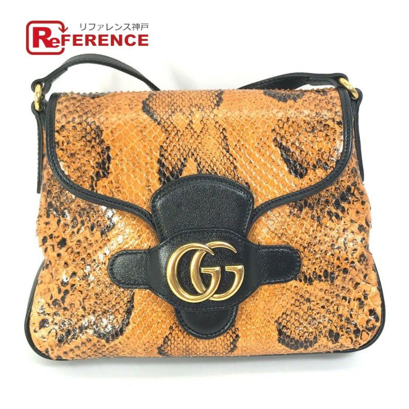【新品同様】グッチ 橙色 GUCCI グッチ 648934 GGマーモント カバン 斜め掛け ショルダーバッグ パイソン/レザー レディース オレンジ 新品同様 【中古】