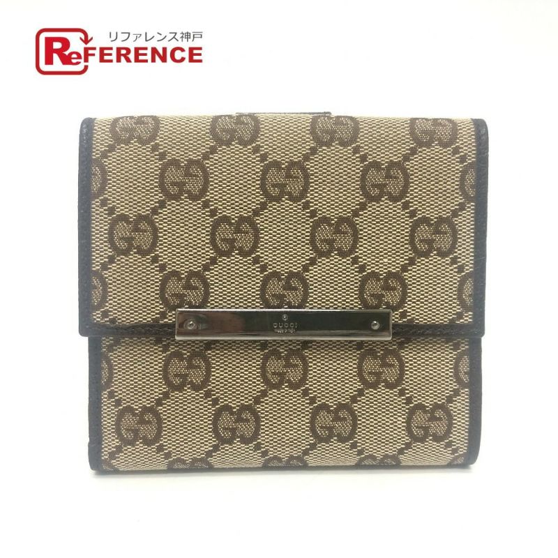 【美品】グッチ 薄茶色 GUCCI グッチ 112664 GG ロゴ 折り財布 財布 ウォレット 2つ折り財布 GGキャンバス/レザー ユニセックス ベージュ 【中古】