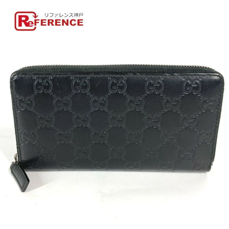 【中古良品】グッチ 黒色 GUCCI グッチ 307987 グッチシマ GG ロングウォレット ラウンドファスナー 長財布 シマレザー レディース ブラック 【中古】