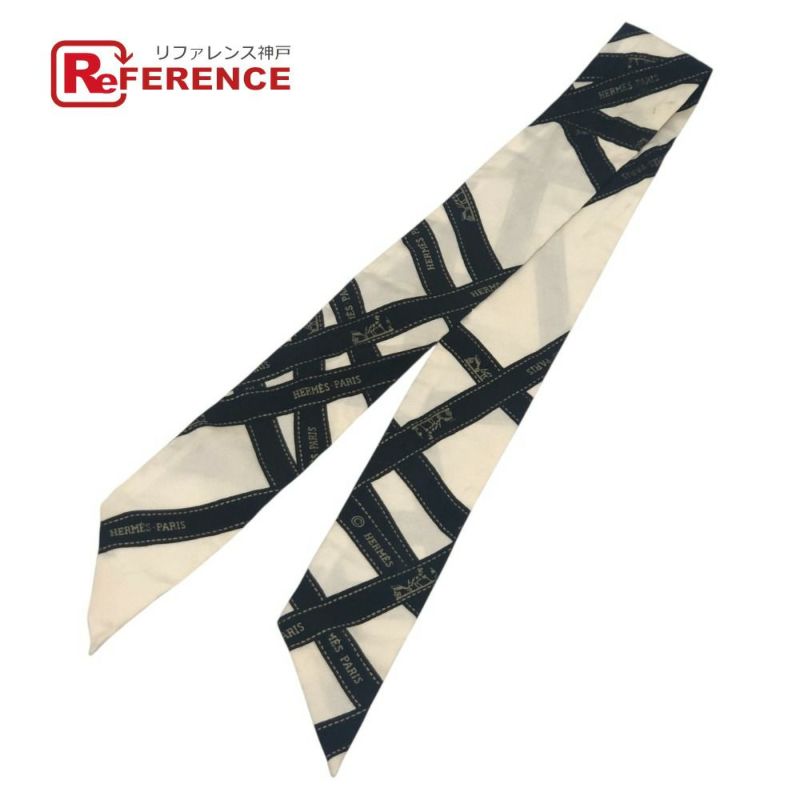 エルメス 白色 HERMES エルメス ツイリー BOLDUC AU CARRE ボルデュックリボン ファッション小物 リボン柄 バンドスカーフ スカーフ シルク レディース ホワイト 【中古】