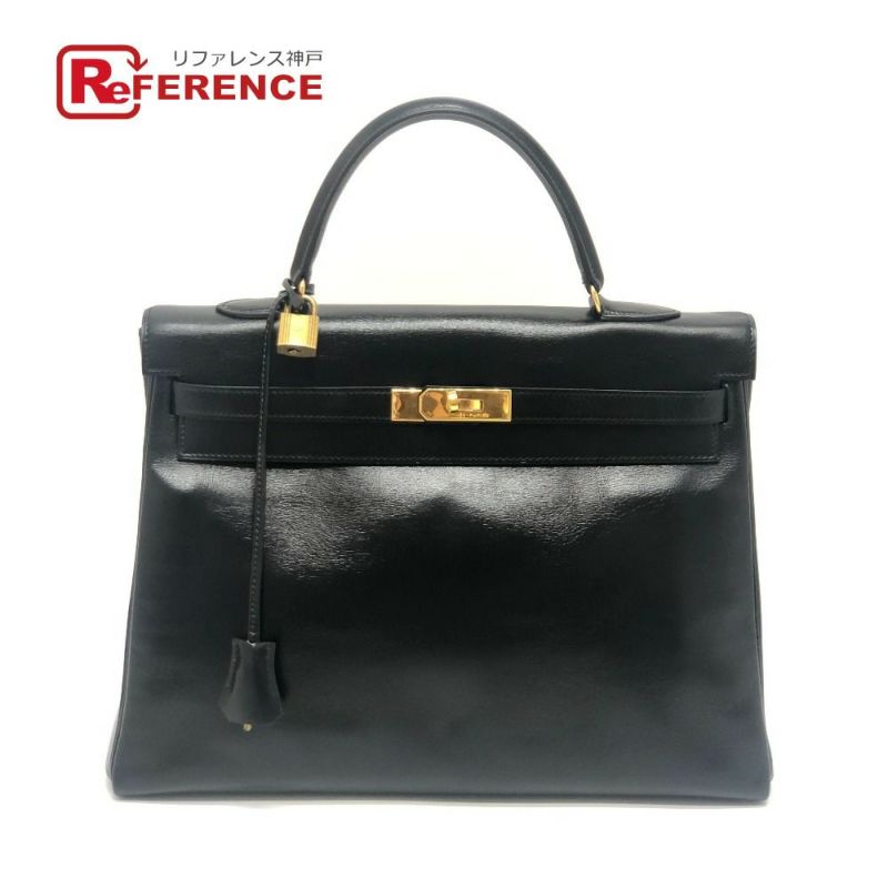 エルメス 黒色 HERMES エルメス ケリー35 ケリー 35 内縫い カバン ゴールド金具 ハンドバッグ ボックスカーフ レディース ブラック 【中古】
