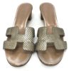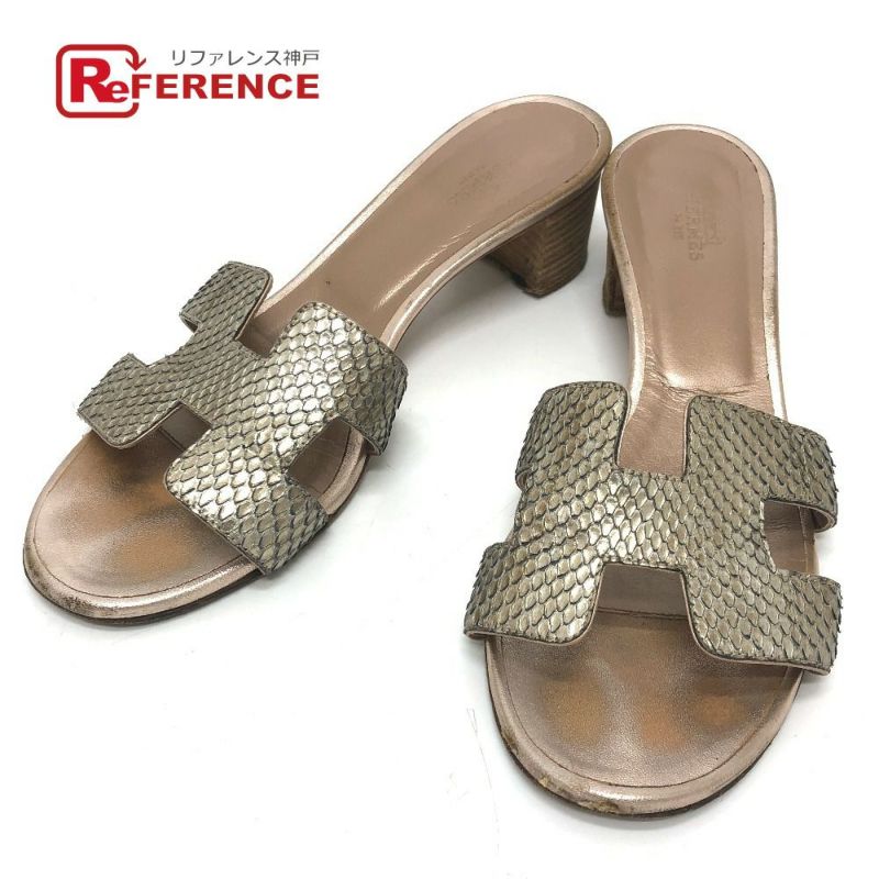 エルメス 薄茶色 HERMES エルメス Hモチーフ オアジス オアシス ミュール ペタンコ フラット サンダル レザー レディース ベージュ系 【中古】