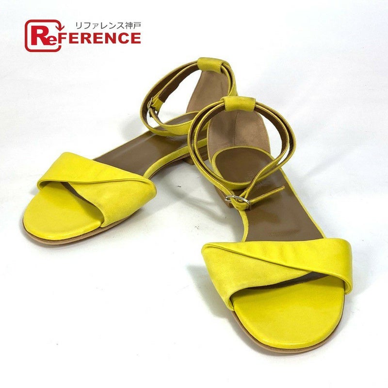 【美品】エルメス 黄色 HERMES エルメス フラット ベルト付き 靴 ペタンコ シューズ サンダル レザー/スエード レディース イエロー 【中古】