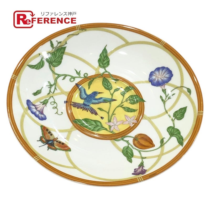 【中古良品】エルメス カラフル HERMES エルメス 花 鳥 蝶 シエスタ キッチン用品 食器 ソーサー お皿 陶器 ユニセックス マルチカラー 【中古】