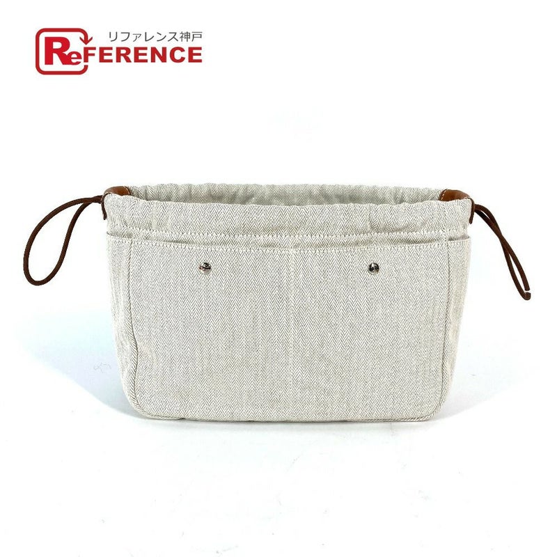 【中古良品】エルメス 薄茶色 HERMES エルメス フールビ 25 バッグインバッグ ポーチ トワルシェブロン /ヴォーバレニア レディース ベージュ 【中古】