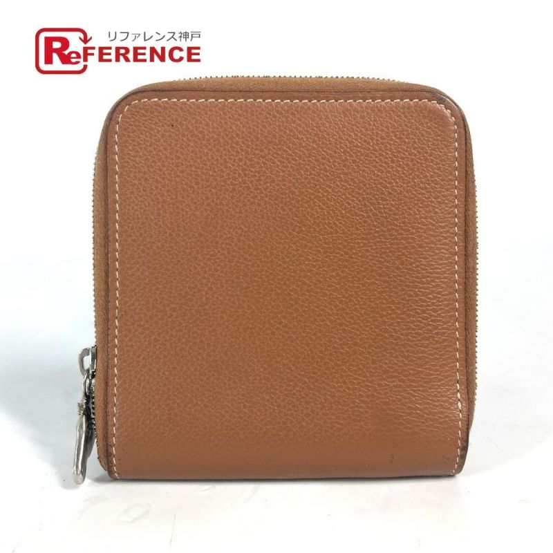 【中古良品】エルメス 茶色 HERMES エルメス ラウンドファスナー ジップアンゴーホース コンパクトウォレット 札入れ 2つ折り財布 レザー ユニセックス ブラウン 【中古】