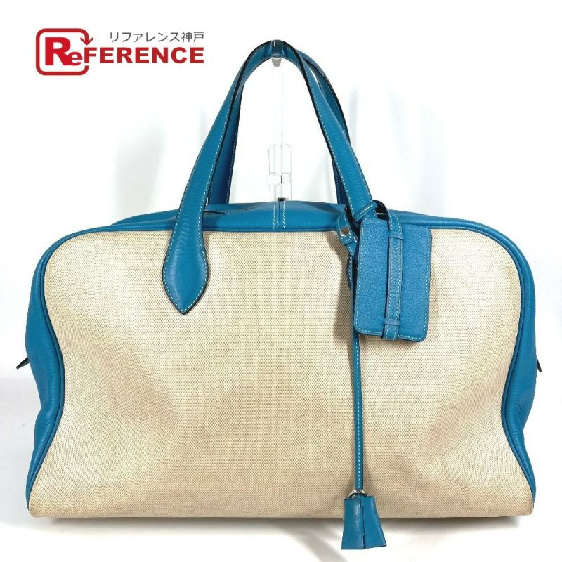 エルメス 青色 HERMES エルメス ヴィクトリア 43 ヴィクトリア43 ショルダーバッグ カバン 肩掛け トラベルバッグ 旅行バッグ ボストンバッグ トワルアッシュ /レザー ユニセックス ブルージーン ブルー 【中古】