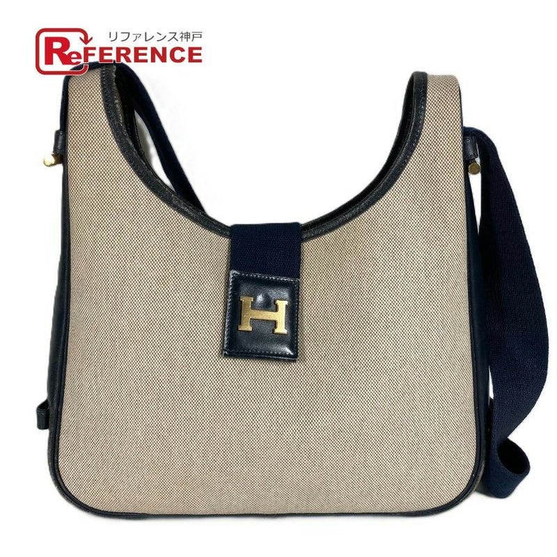 エルメス 紺色 HERMES エルメス ヴィンテージ サコ Hロゴ カバン 斜め掛け ショルダーバッグ トワルアッシュ /レザー レディース ネイビー 【中古】