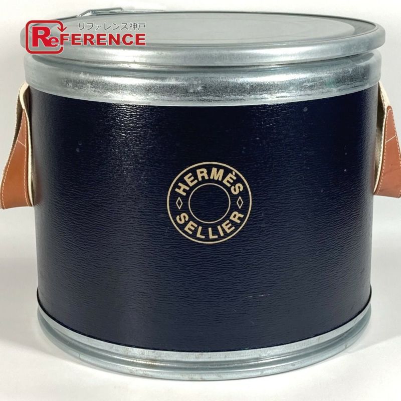 エルメス 紺色 HERMES エルメス セリエ 馬具入れ インテリア ロゴ サドルボックス マルチケース ドラム缶 小物入れ ペーパー /アルミ レディース ネイビー 【中古】