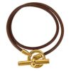 【中古良品】エルメス 茶色 HERMES エルメス ネックレス チョーカー グレナン ロゴ 2重ブレス バングル アクセサリー ブレスレット レザー レディース ブラウン 【中古】