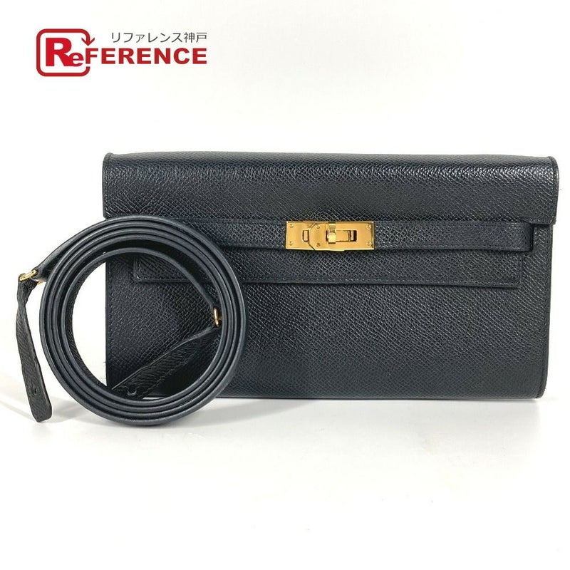 【中古良品】エルメス 黒色 HERMES エルメス ショルダーウォレット ケリーウォレット ロング トゥーゴー カバン ショルダーバッグ ポシェット 長財布 エプソン ユニセックス ブラック 【中古】