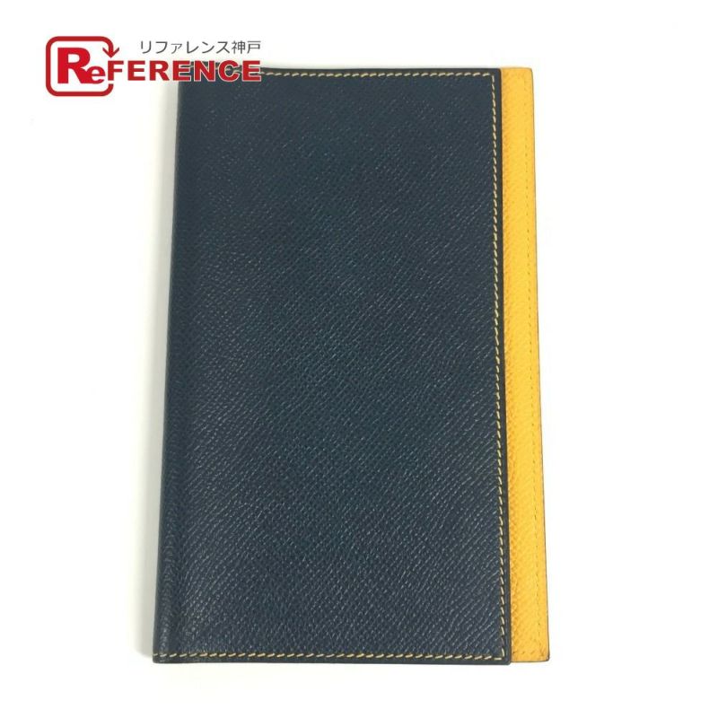 【中古良品】エルメス 紺色 HERMES エルメス 2つ折り バイカラー アジェンダMM アジェンダ PM システム手帳 ステーショナリー 手帳カバー レザー ユニセックス ネイビー 【中古】