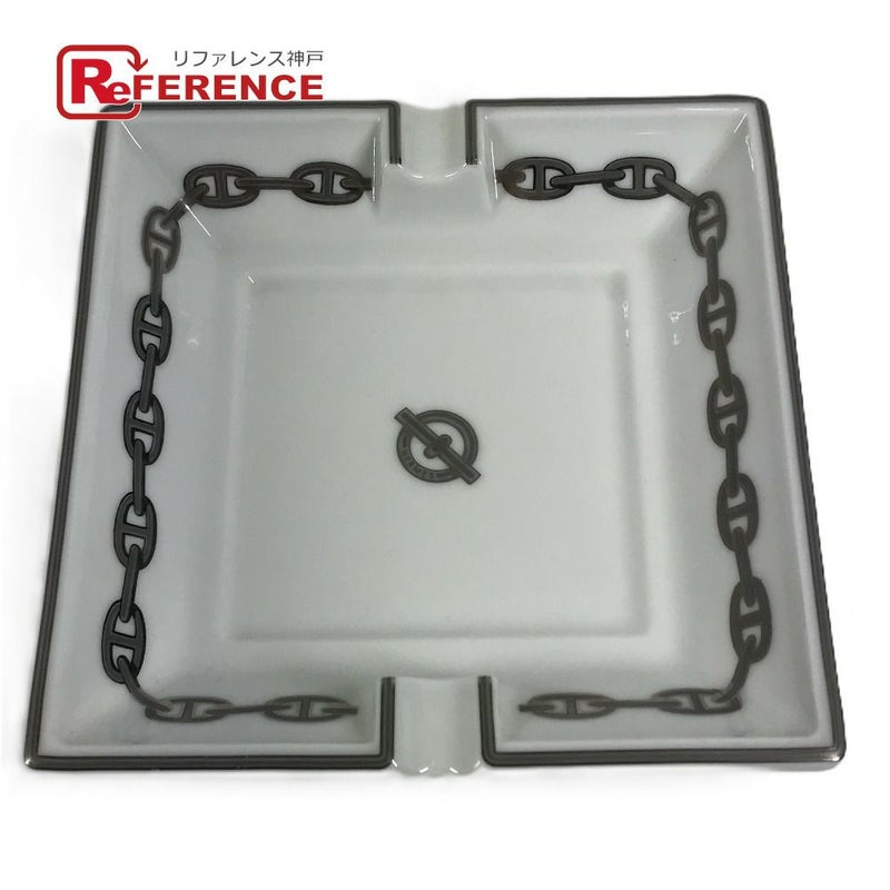 【中古良品】エルメス 白色 HERMES エルメス シェーヌダンクル ロゴ アッシュトレイ 皿 インテリア トレー 灰皿 陶器 ユニセックス ホワイト 【中古】