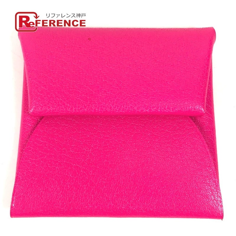 【新品同様】エルメス HERMES エルメス バスティア 財布 小銭入れ スクエア シルバー金具 コインケース レザー ユニセックス ピンク 新品同様 【中古】