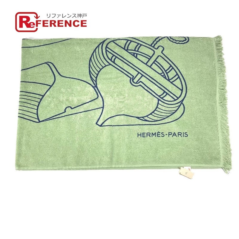 【未使用】エルメス 緑色 HERMES エルメス DRAP DE PLAGE YACHTING THALASSA ヨッティング プラージュ テレサ バスタオル インテリア ひざかけ ブランケット フリンジ タオル コットン ユニセックス グリーン 未使用 【中古】