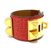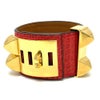 【美品】エルメス 金色 HERMES エルメス コリエドシアン バングル アクセサリー ブレスレット レザー レディース ブーゲンビリア レッド系×ゴールド金具 【中古】