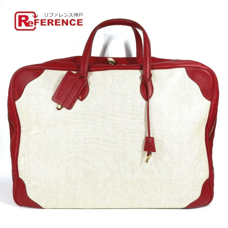 エルメス 赤色 HERMES エルメス ヴィクトリア 60 ヴィクトリア60 カバン 旅行バッグ トラベルバッグ ボストンバッグ トワルアッシュ /レザー ユニセックス レッド 【中古】