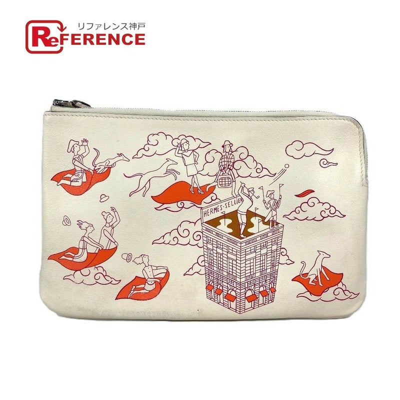【美品】エルメス HERMES エルメス カレ ポケット ロング 小物入れ フラットポーチ カバン クラッチバッグ ポーチ レザー レディース アイボリー系 【中古】