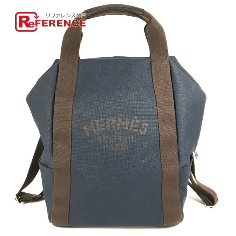 【中古良品】エルメス 紺色 HERMES エルメス サックドパンサージュグルーム カバン バックパック リュックサック コットン ユニセックス ネイビー 【中古】