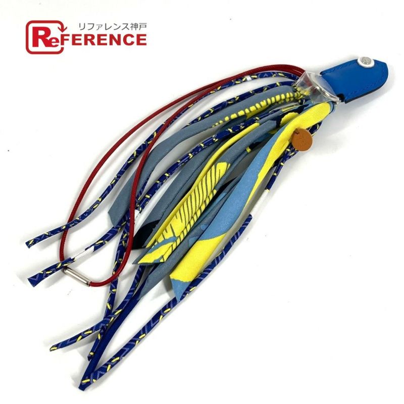 【未使用】エルメス 青色 HERMES エルメス プティアッシュ petit h フィッシュルー キーホルダー キーリング バッグチャーム チャーム シルク ユニセックス ブルー 未使用 【中古】