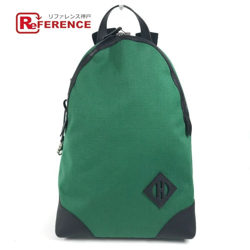 【中古良品】エルメス 緑色 HERMES エルメス Hロゴ エルメス・オールバック カバン バックパック バイカラー リュックサック キャンバス/レザー ユニセックス グリーン 【中古】