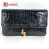 エルメス 黒色 HERMES エルメス ヴィンテージ ロゴ フラップ タッセル フリンジ ポーチ セカンドバッグ カバン クラッチバッグ クロコダイル ユニセックス ブラック 【中古】