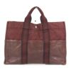 エルメス 赤色 HERMES エルメス ハーフレザー 革 フールトゥMM フールトゥ MM カバン トートバッグ ハンドバッグ キャンバス/レザー ユニセックス ワインレッド系 【中古】