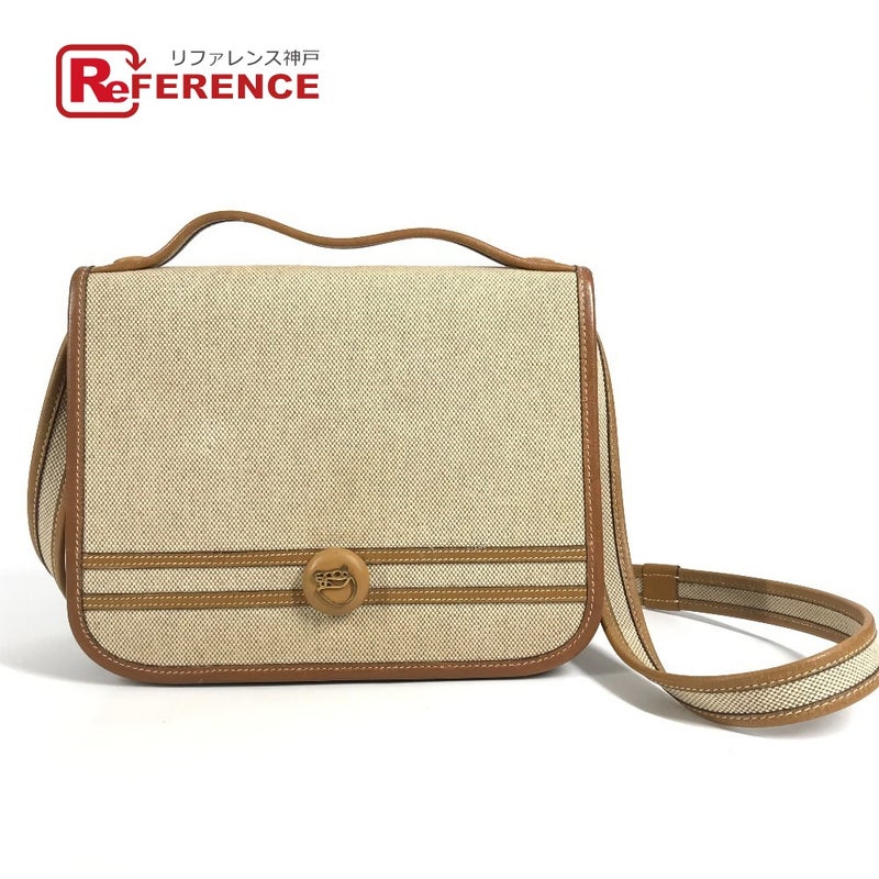 エルメス 薄茶色 HERMES エルメス 馬 シュバル ロゴ ヴィンテージ ジョッキー カバン 斜め掛け フラップ ポシェット 2WAYバッグ ハンドバッグ ショルダーバッグ レザー/キャンバス ユニセックス ベージュ 【中古】
