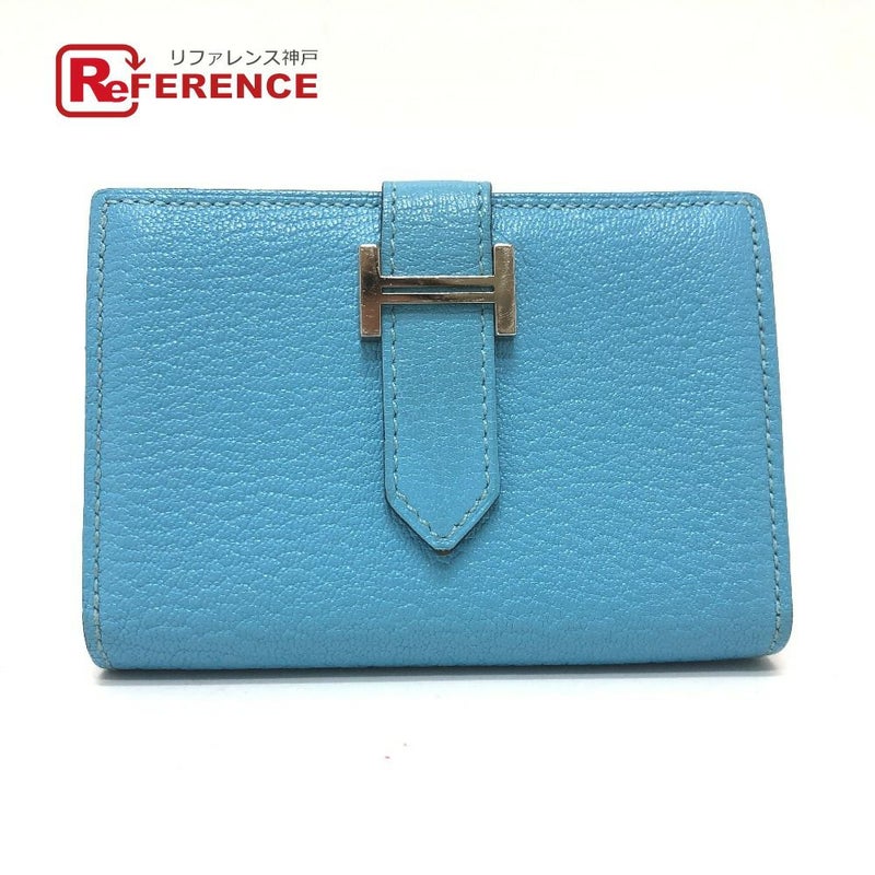 エルメス 青色 HERMES エルメス ベアン ミニ コンパクト カードケース シェーブルコロマンデル レディース ブルー 【中古】