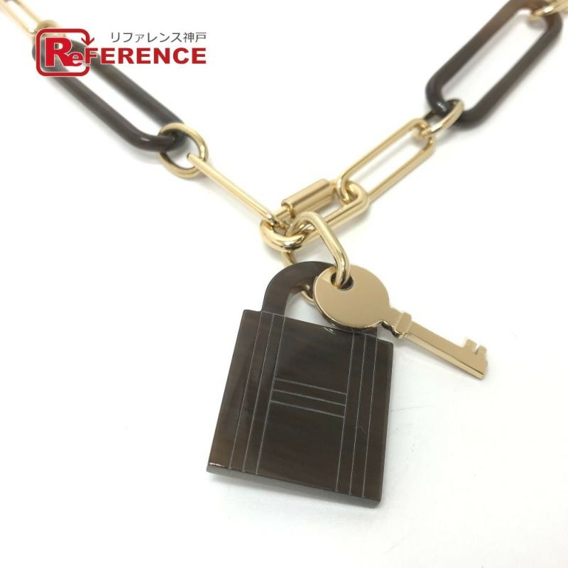 【美品】エルメス 茶色 HERMES エルメス アミュレット パドロックGM アクセサリー ネックレス GP /バッファローレザー レディース ブラウン 【中古】