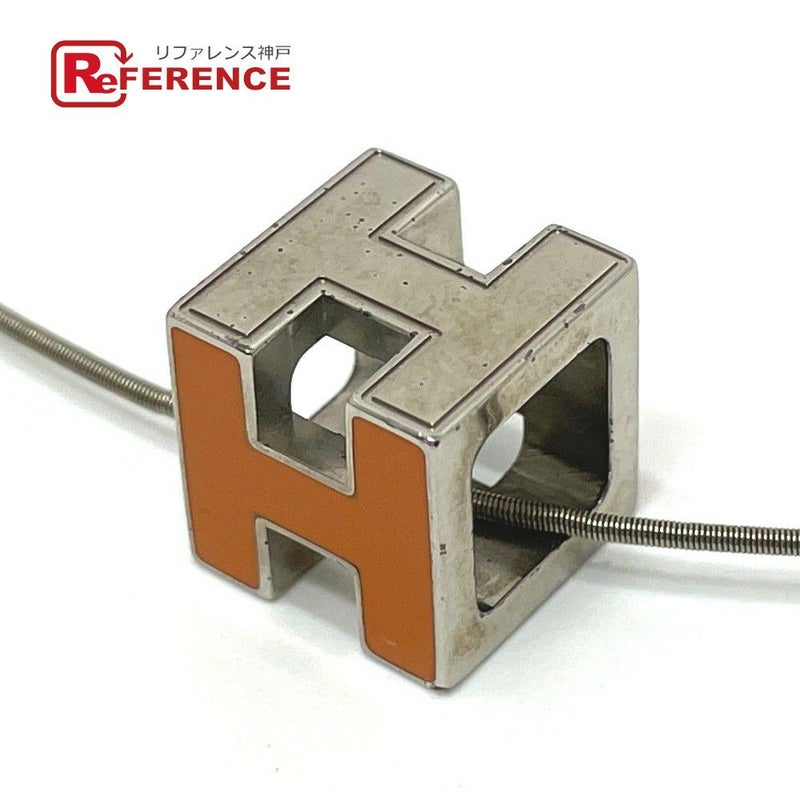 エルメス 橙色 HERMES エルメス Hキューブ カージュドアッシュ ネックレス メタル レディース オレンジ×シルバー 【中古】