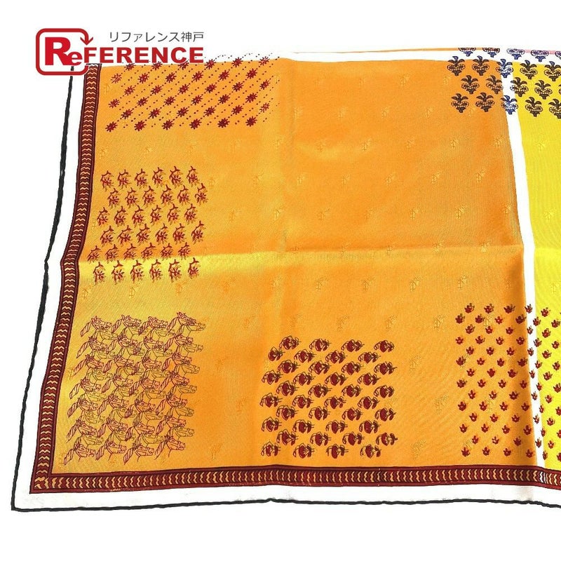 【美品】エルメス 橙色 HERMES エルメス カレ90 カレ 90 ブロックの4重編み Quadrige galon quadri au bloc スカーフ シルク レディース オレンジ 【中古】
