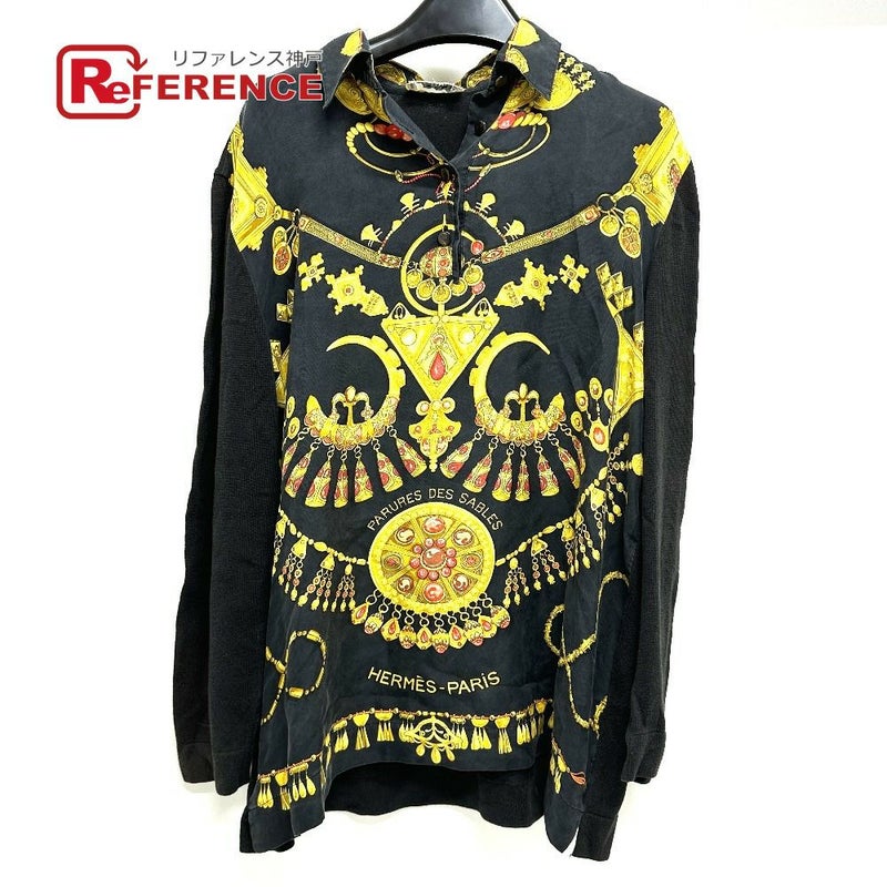 エルメス 金色 HERMES エルメス ヴィンテージ ツイルレーヌ アパレル 長袖シャツ シルク レディース ブラック×ゴールド 【中古】