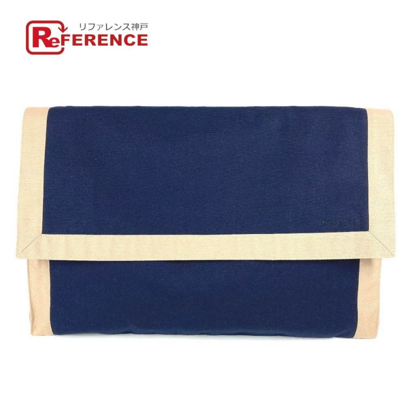 【美品】エルメス 紺色 HERMES エルメス タピドセル ビッグ 特大 ポーチ フラップ クラッチバッグ コットン ユニセックス ネイビー 【中古】