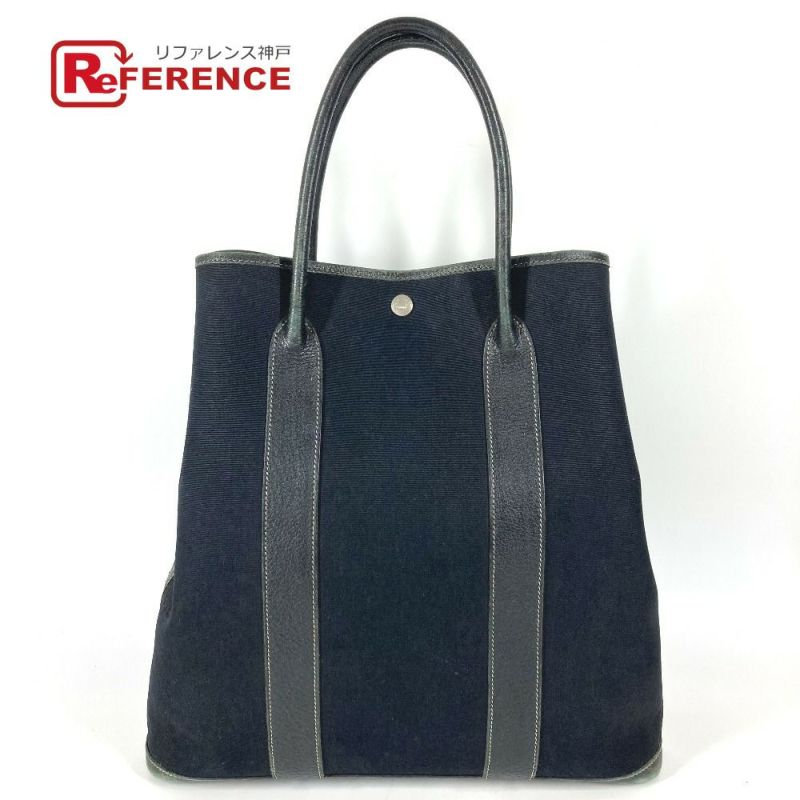 エルメス 黒色 HERMES エルメス ガーデンファイルMM ガーデンファイル MM カバン トートバッグ 肩掛け ショルダーバッグ レザー /キャンバス ユニセックス ブラック 【中古】