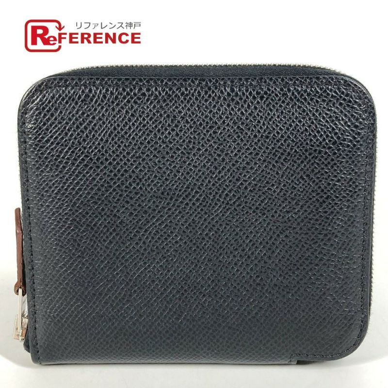 【美品】エルメス 黒色 HERMES エルメス アザップコンパクト 財布 ウォレット 小銭入れ ラウンドファスナー コインケース エプソン ユニセックス ブラック 【中古】