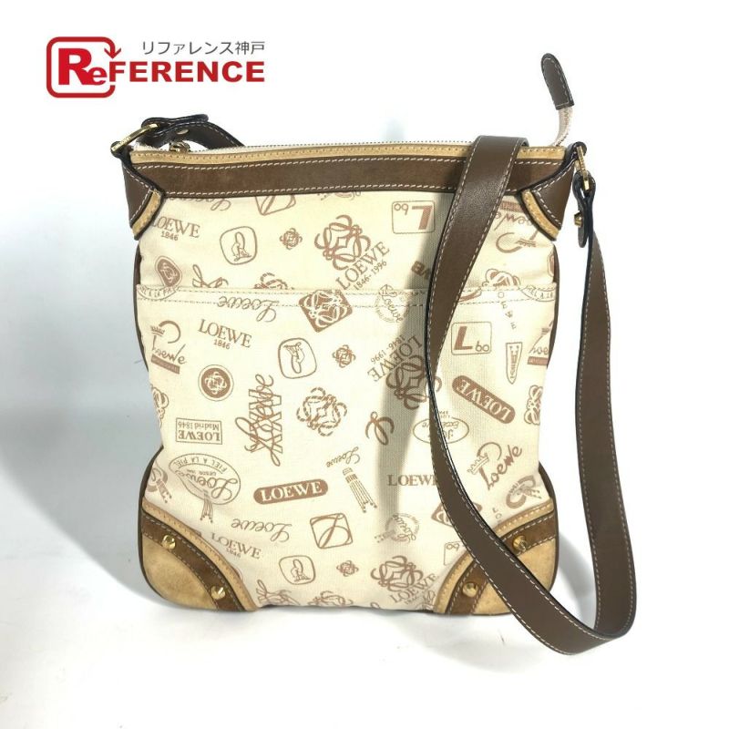 【中古良品】ロエベ 薄茶色 LOEWE ロエベ カバン 斜め掛け 160周年 ロゴ ショルダーバッグ キャンバス/レザー レディース ベージュ 【中古】