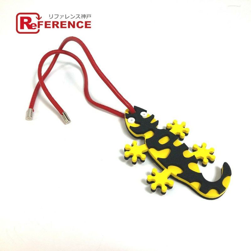 【新品同様】ロエベ 黄色 LOEWE ロエベ トカゲモチーフ サラマンダー カバン ストラップ チャーム レザー レディース イエロー×ブラック×レッド 新品同様 【中古】