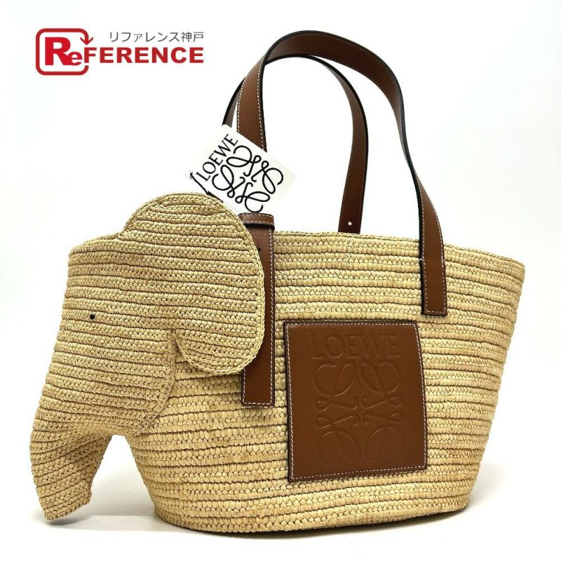 【未使用】ロエベ 薄茶色 LOEWE ロエベ A546T21X01 エレファント バスケット ラージ バスケットバッグ カゴバッグ カバン バッグ トートバッグ ラフィア /レザー レディース ベージュ 未使用 【中古】