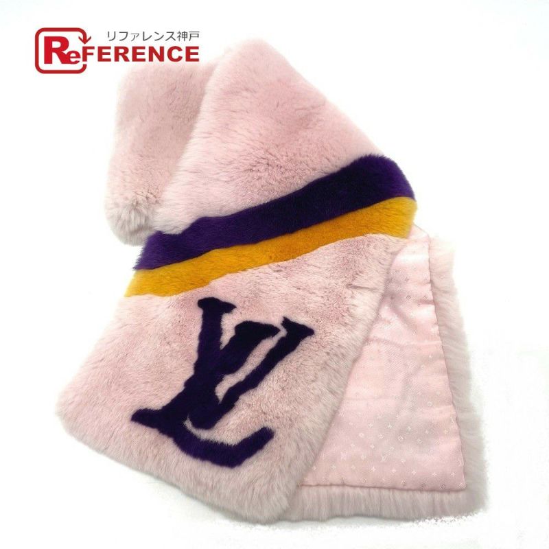 【美品】ルイヴィトン LOUIS VUITTON ルイヴィトン M70272 LVロゴ エシャルプ ティペット ファー マフラー シルク /ファー レディース ピンク 【中古】